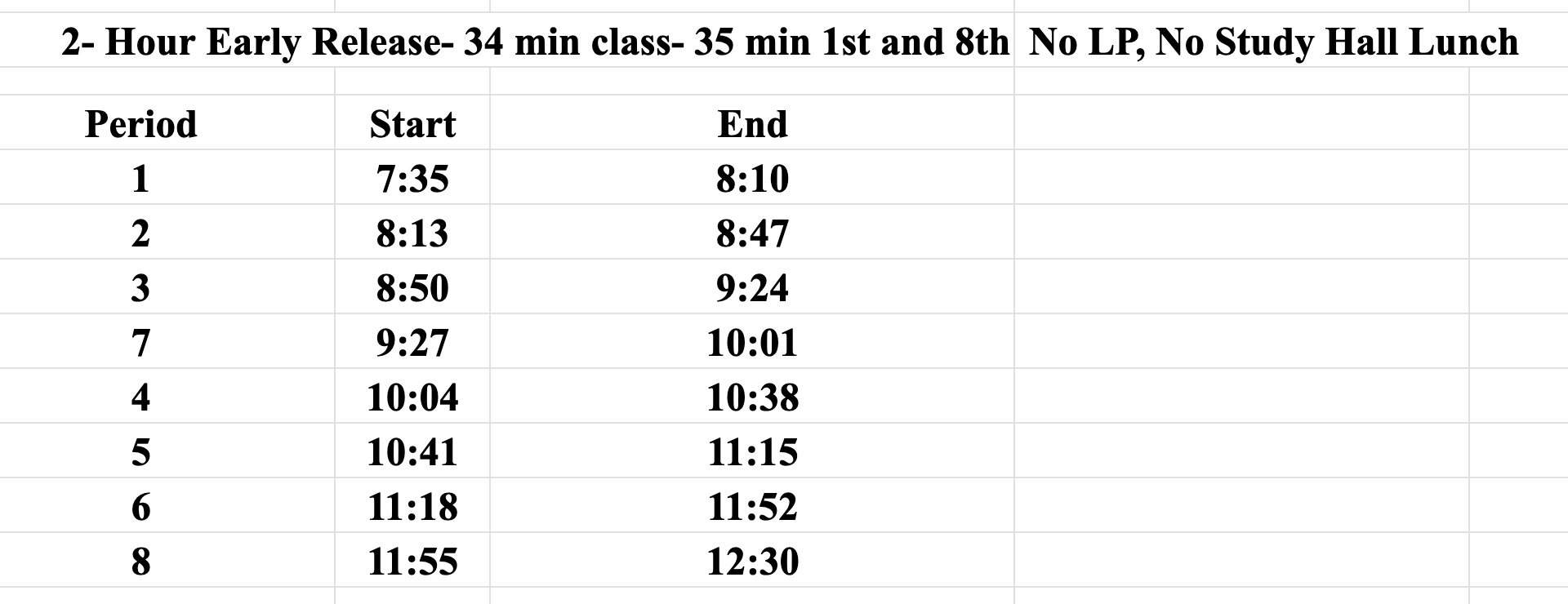 January 29 Two Hour Early Release
