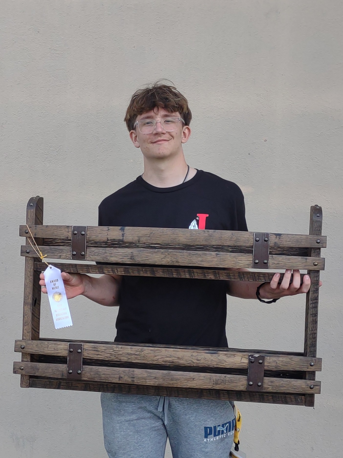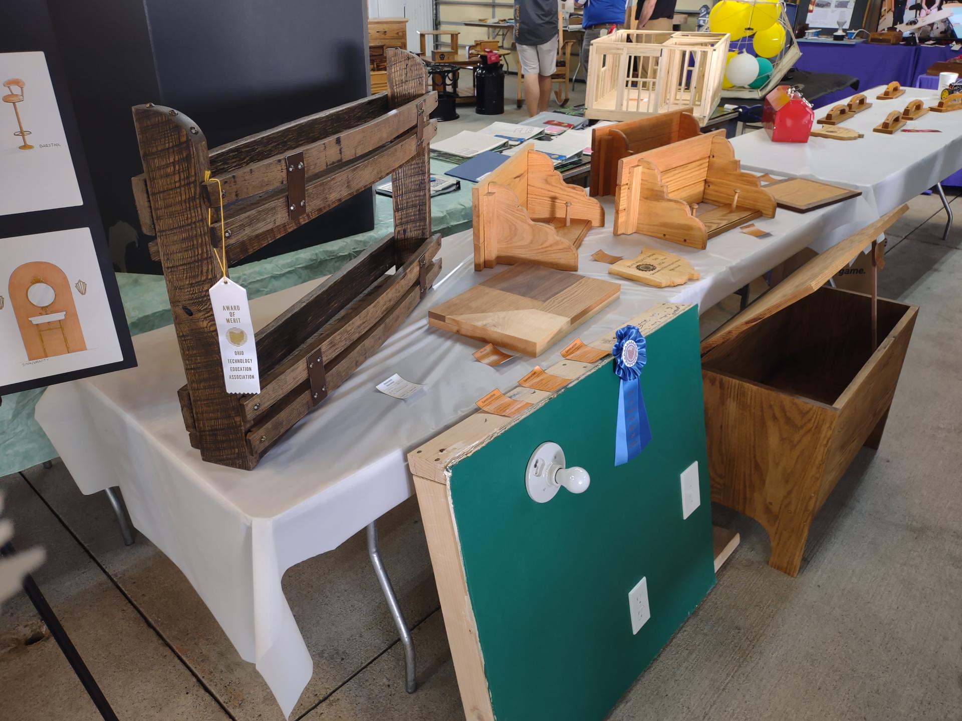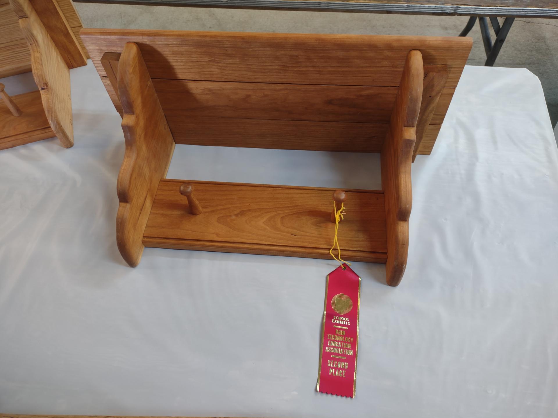 Maddie Tompkins received second place for her woodworking shelf project. |